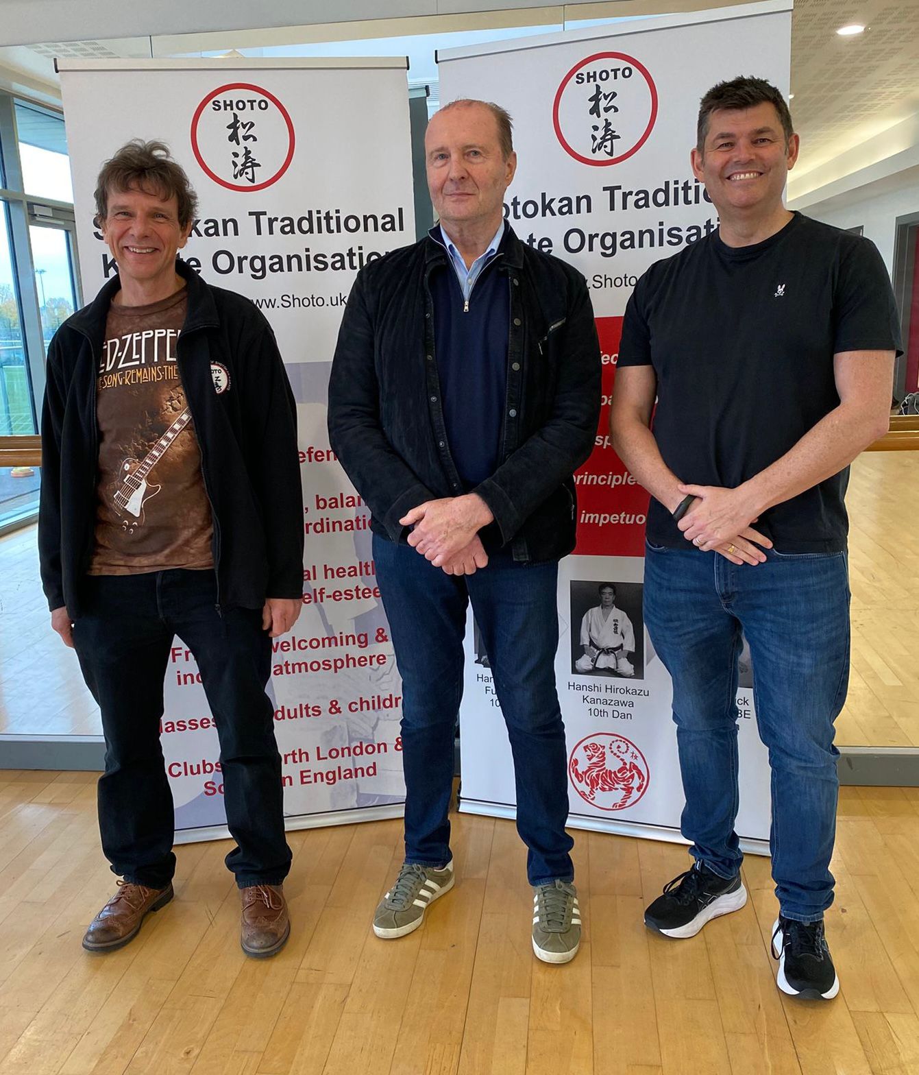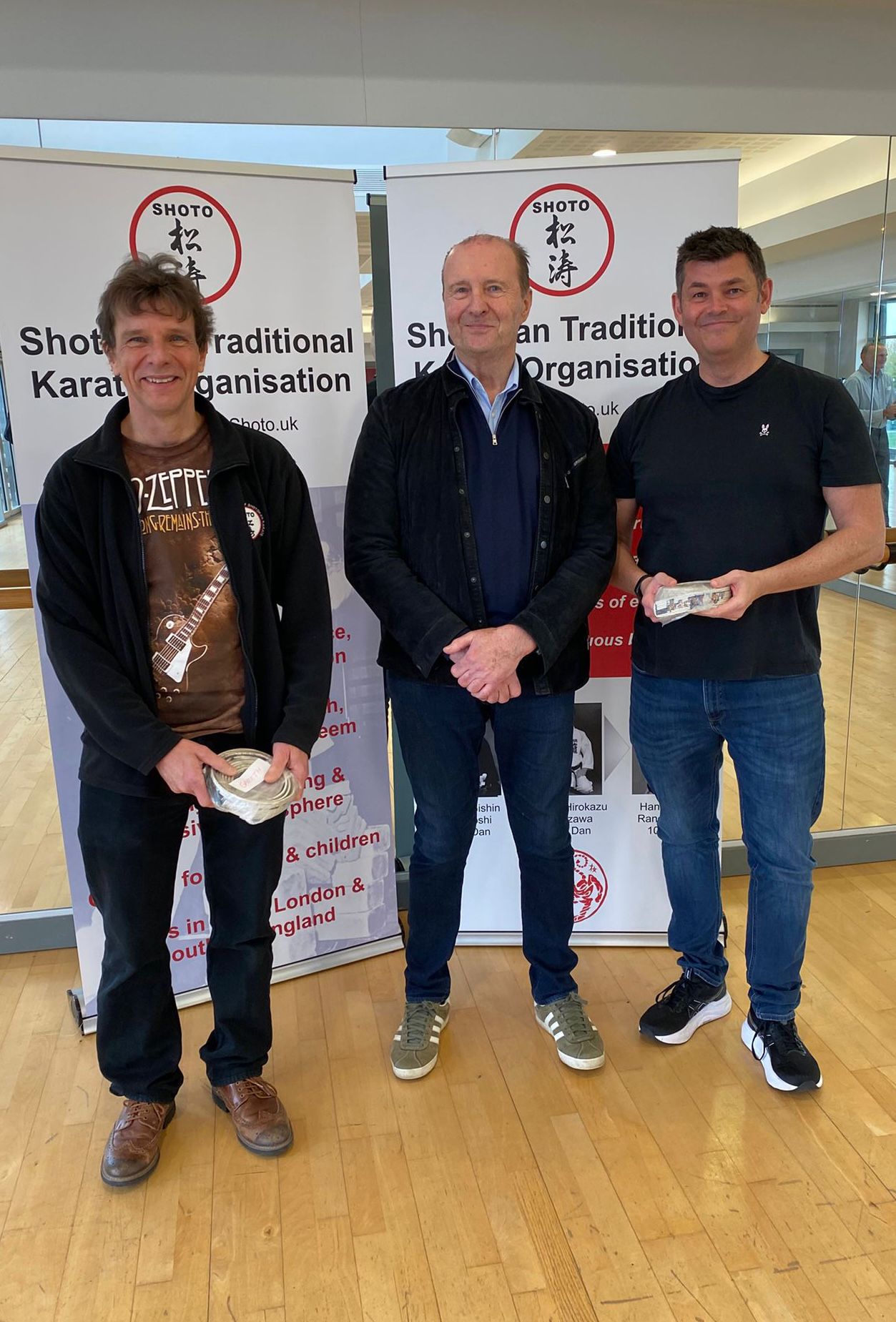 Both Steve and Gareth have trained consistently with SHOTO for over 40 years, training with both Sensei John Blain and the late Sensei John Morgan. They are seen here with Sensei John Blain (SHOTO Head of Association) receiving Sensei John Morgan's belts. Both Steve and Gareth are longstanding members of Harpenden Club and are on the SHOTO Technical Committee. The success of many of SHOTOs events and activities is due in no small part to their hard work and dedication.